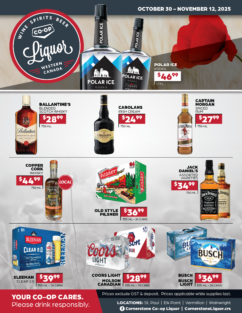 Cornerstone Co-op Liquor is proud to bring you a new, online Liquor Store Flyer.